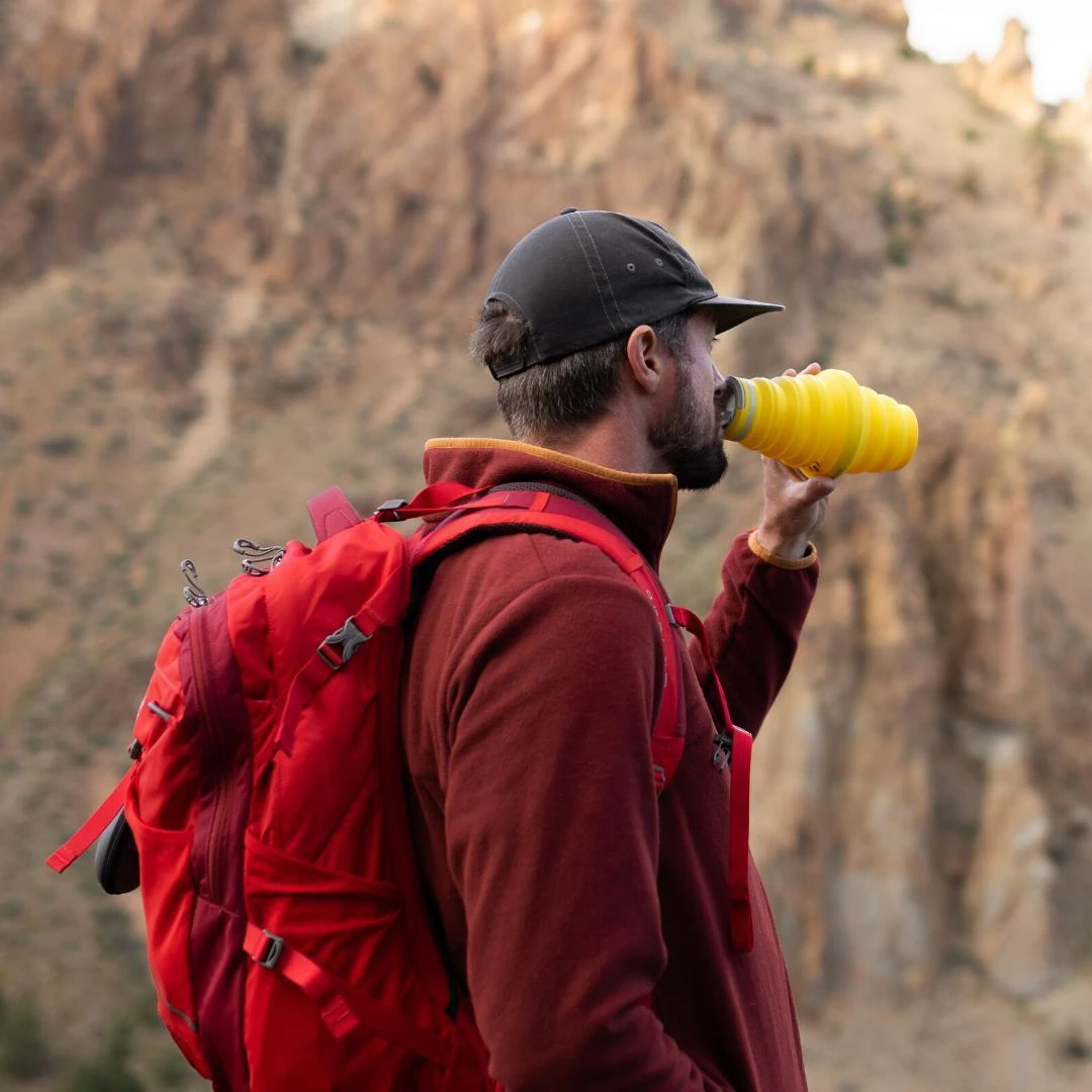 Our adventure-sized bottle collapses down to a ridiculously small 1.5″ disc. When expanded, it holds a thirst-quenching 25 ounces of water. Available in a variety of colors, it’s hydration that fits your life.