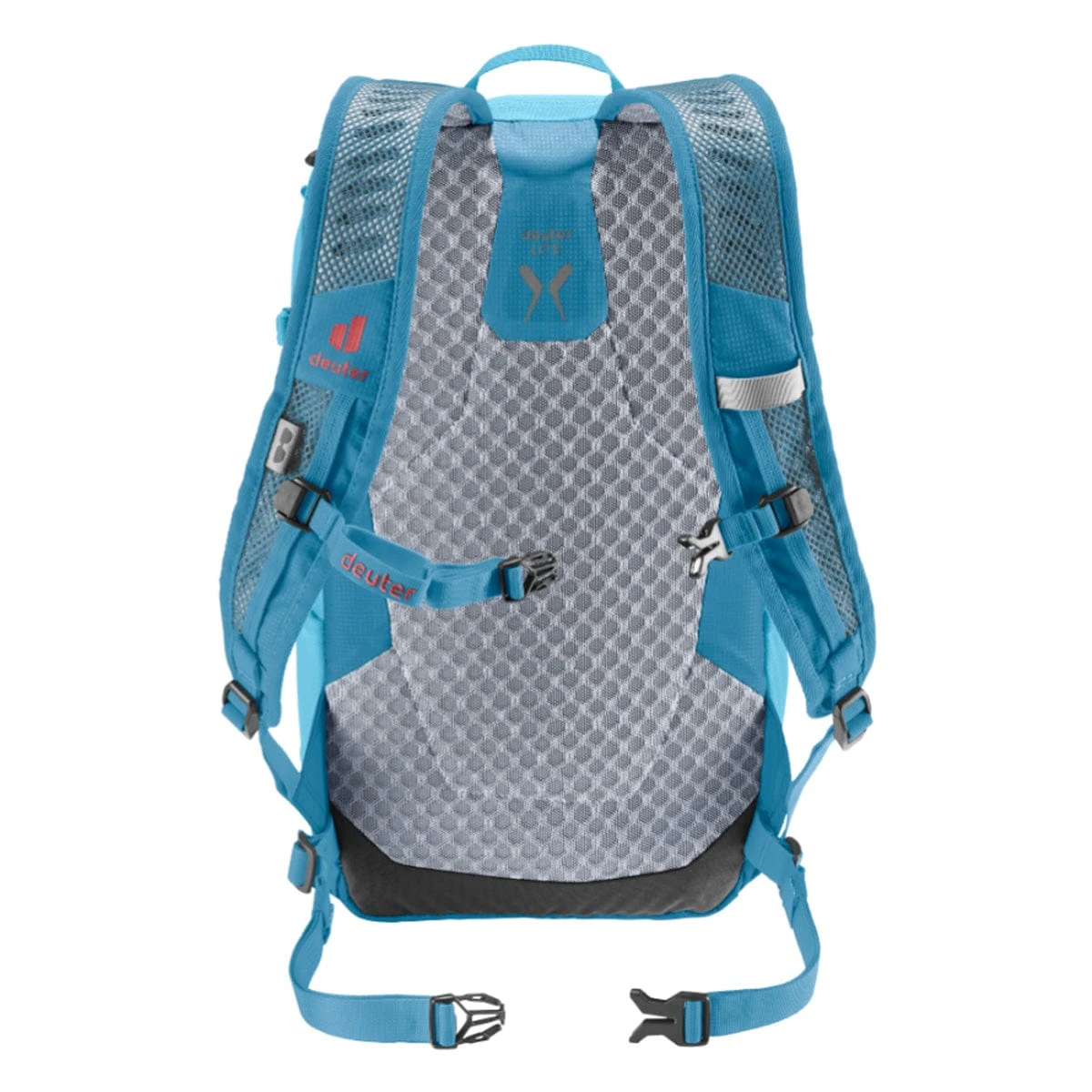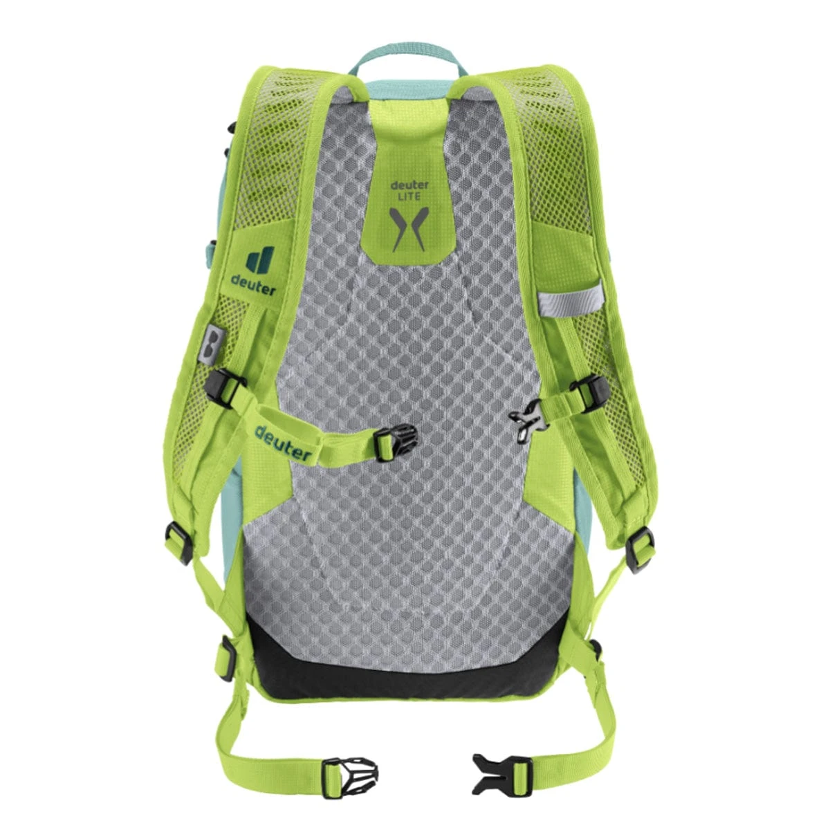 This pack is speedy, light and sustainable thanks to deuter’s Lite back system, ergonomic, perforated shoulder straps, a detachable waist belt, precision-adjustable sternum strap and 100% recycled, bluesign® certified body fabric. Designed for fast-paced hiking, side compression straps effectively reduce load wobble and enable full range of movement. This helps save energy over longer distances too.
