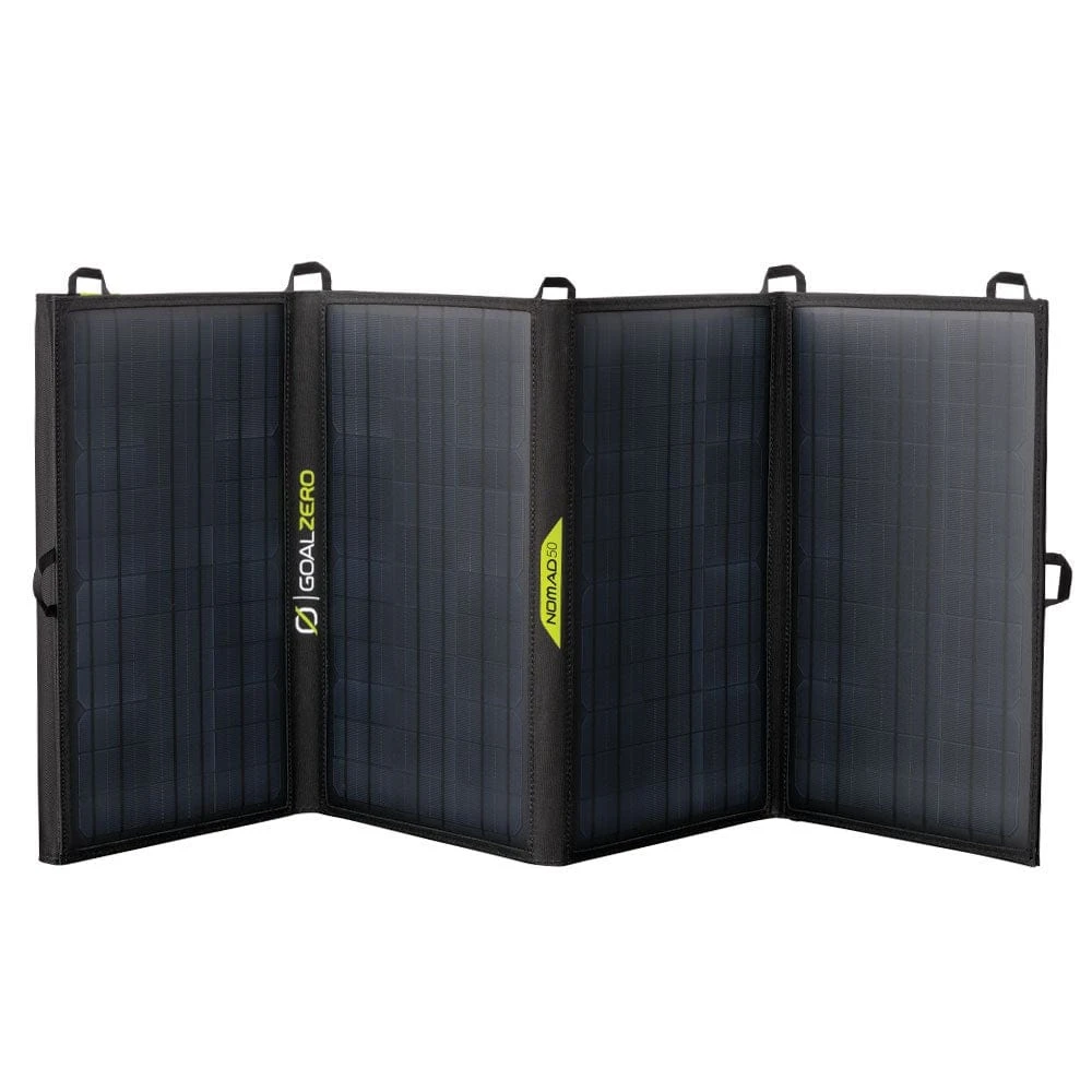 Built tough for mobile base camps and off-grid adventures, the Nomad 50 is perfect for longer trips when you need more power without sacrificing packability. The versatile four-panel design makes it easy to unfold and collect solar power while stationary, then quickly pack away in tight spaces in your vehicle while traveling. Pair with a Yeti Power Station to keep laptops charged, run portable fridges, and power essential electronics.