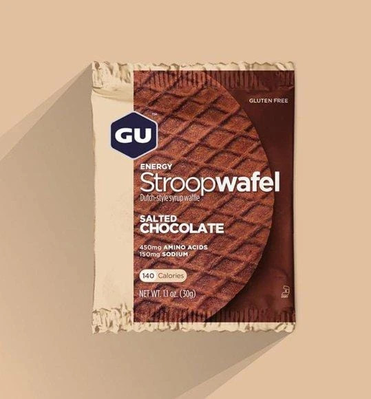 The GU Salted Chocolate Stroopwaffel Bar is light on the stomach and easy to digest before or during activity.Â