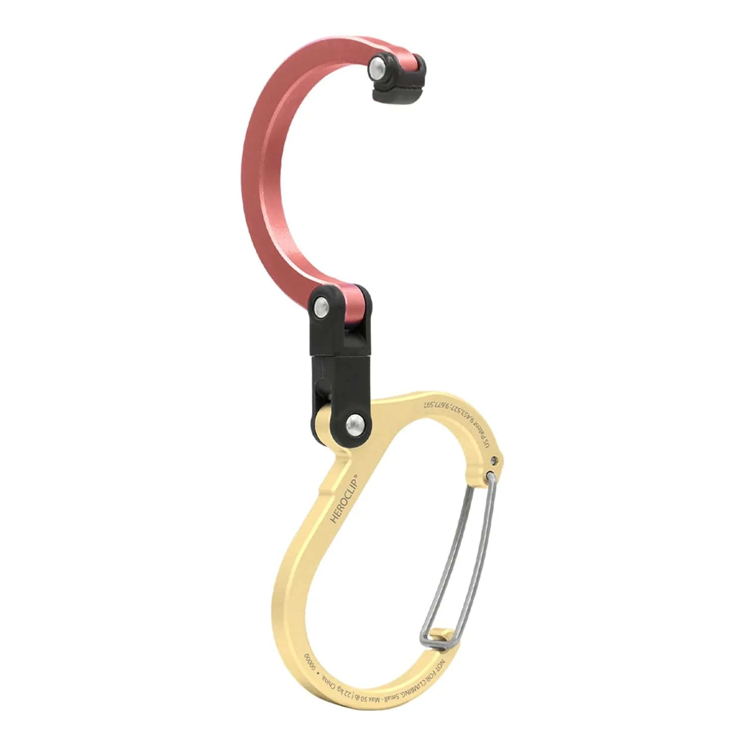Perfect for midsize items you encounter every day, Heroclip Small gear clip lets you hook and hang commuter bags and backpacks from shelves, counters, tables, chairs or even doors. They’re also great for hanging gravity filters from tree branches, tools from a ladders, or carry-on bags from roller suitcase handles. This versatile gear clip hangs securely, rotates 360°, and folds compactly in ways other carabiners, clips and hooks can’t, helping you keep your gear organized and exactly where you want it, no matter the activity. The clip also features a wider clip gate compared to standard carabiners and hooks, and a hook with a grippy rubber tip for hanging things from flat surfaces.