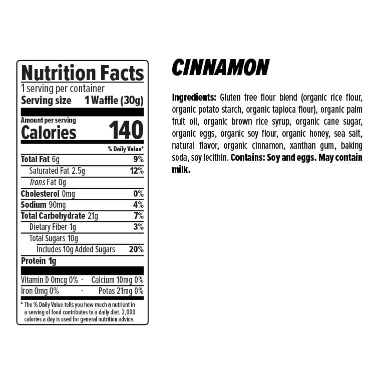 A thin layer of honey infused with delicious cinnamon sandwiched between two thin waffles. The Gluten-Free all-time classic flavor of cinnamon combined with honey will satisfy your taste buds and keep you going as an afternoon snack, during your favorite activity or go great with your cup of coffee or tea.