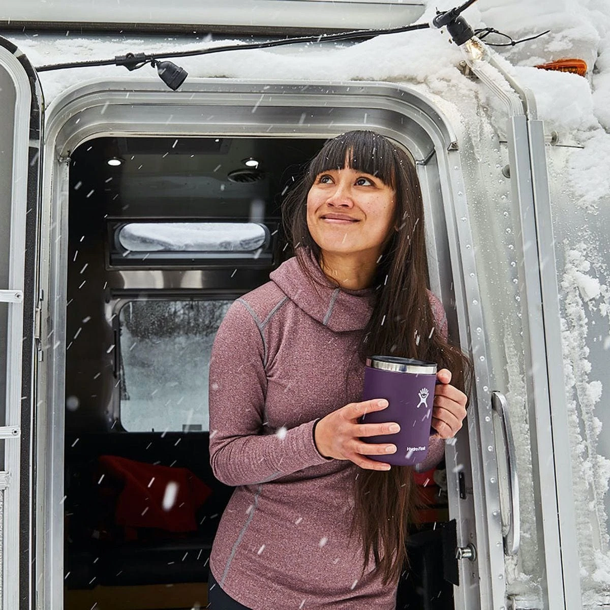 Slides shut to tame splashes and trap temps, then slides open wide enough to fit straws.
