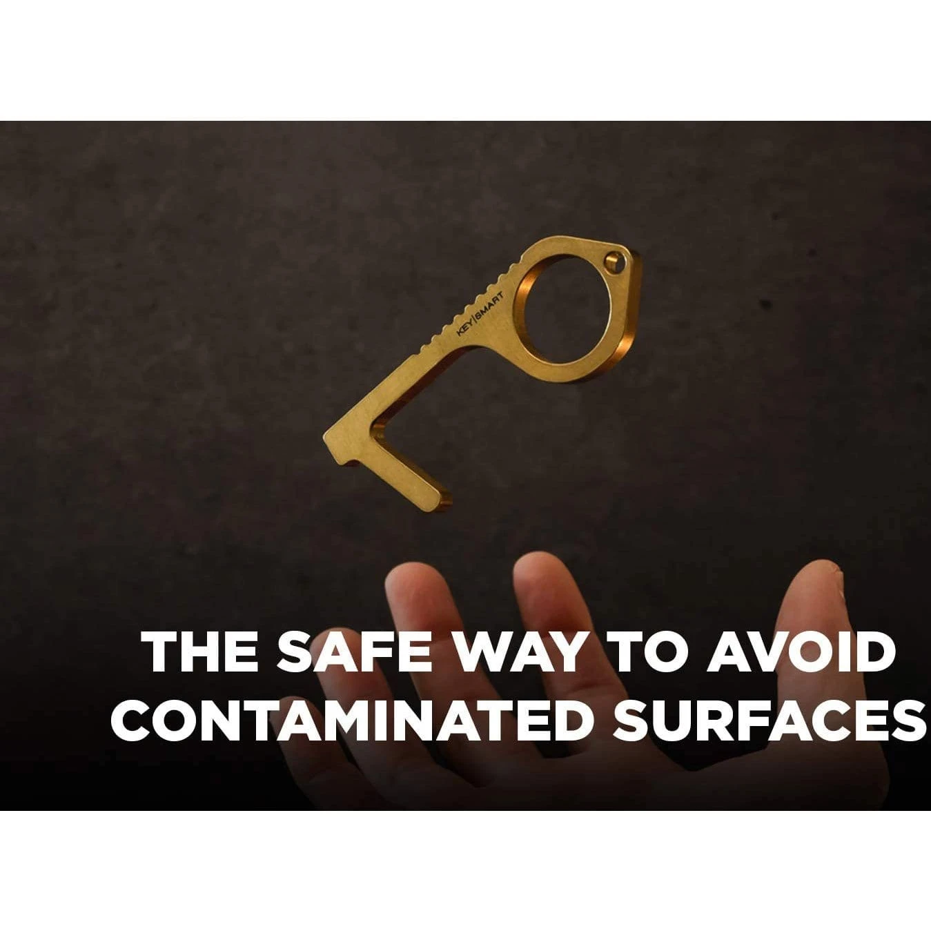 The KeySmart CleanKey is a tool for avoiding touching potentially contaminated surfaces, including doors and touchscreens. This tool, which can attach to KeySmart keychains and carabiners, is made out of a copper alloy and boasts a design that can hook onto the latches of many doors, so you don’t have to touch the door with your hands. You can press buttons with this tool, and you can also pull levers. Need to put your signature on a tablet-style POS system after ordering a meal from your favorite takeaway restaurant? You’re in luck; the CleanKey possesses a stylus tip that works with all touchscreens.