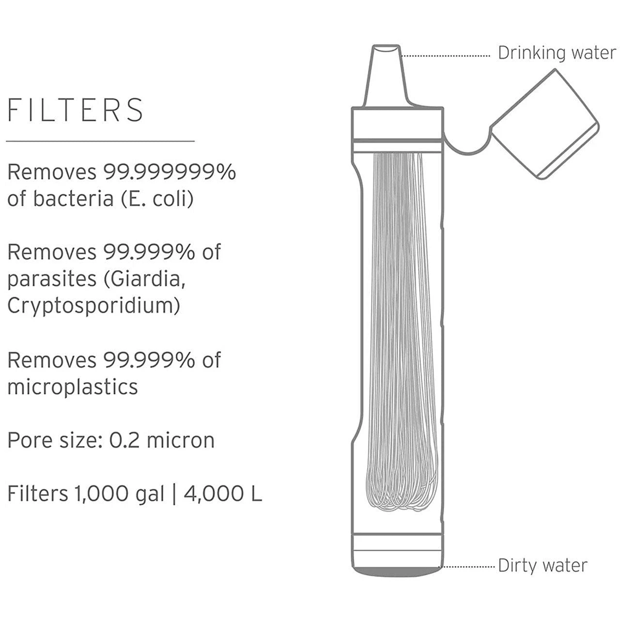 - Long-lasting membrane microfilter will last up to 1,000 gallons (4,000 L) of water, thats enough drinking water for an individual for over 5 years