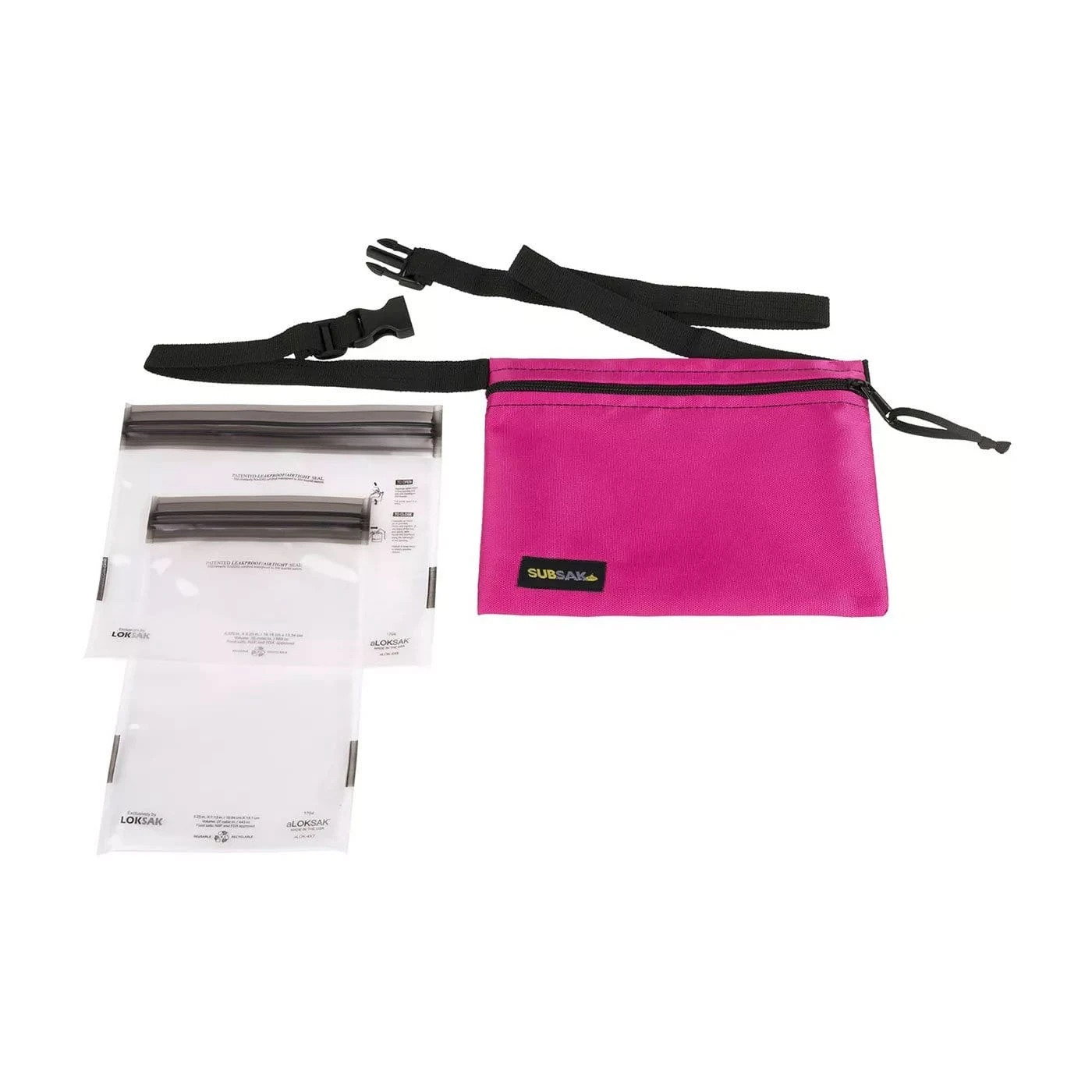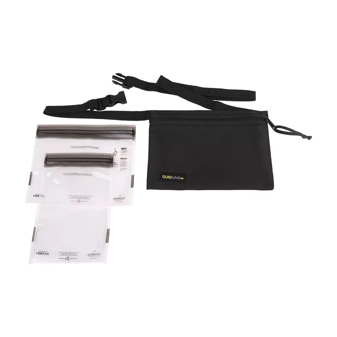 Durable 8.25″X 6″ nylon SUBSAK with adjustable waist strap one 4″x7″ and one 6″ x 6″ waterproof aLOKSAK bags included. Comes in 4 colors.