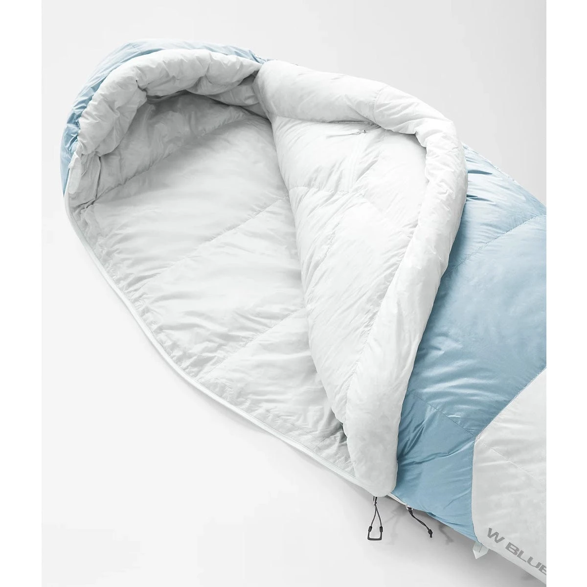 The Women’s Blue Kazoo is a water-repellent 15-degree sleeping bag made with repurposed 700-fill down insulation. This lightweight, compressible bag delivers outsized warmth, comfort and performance.