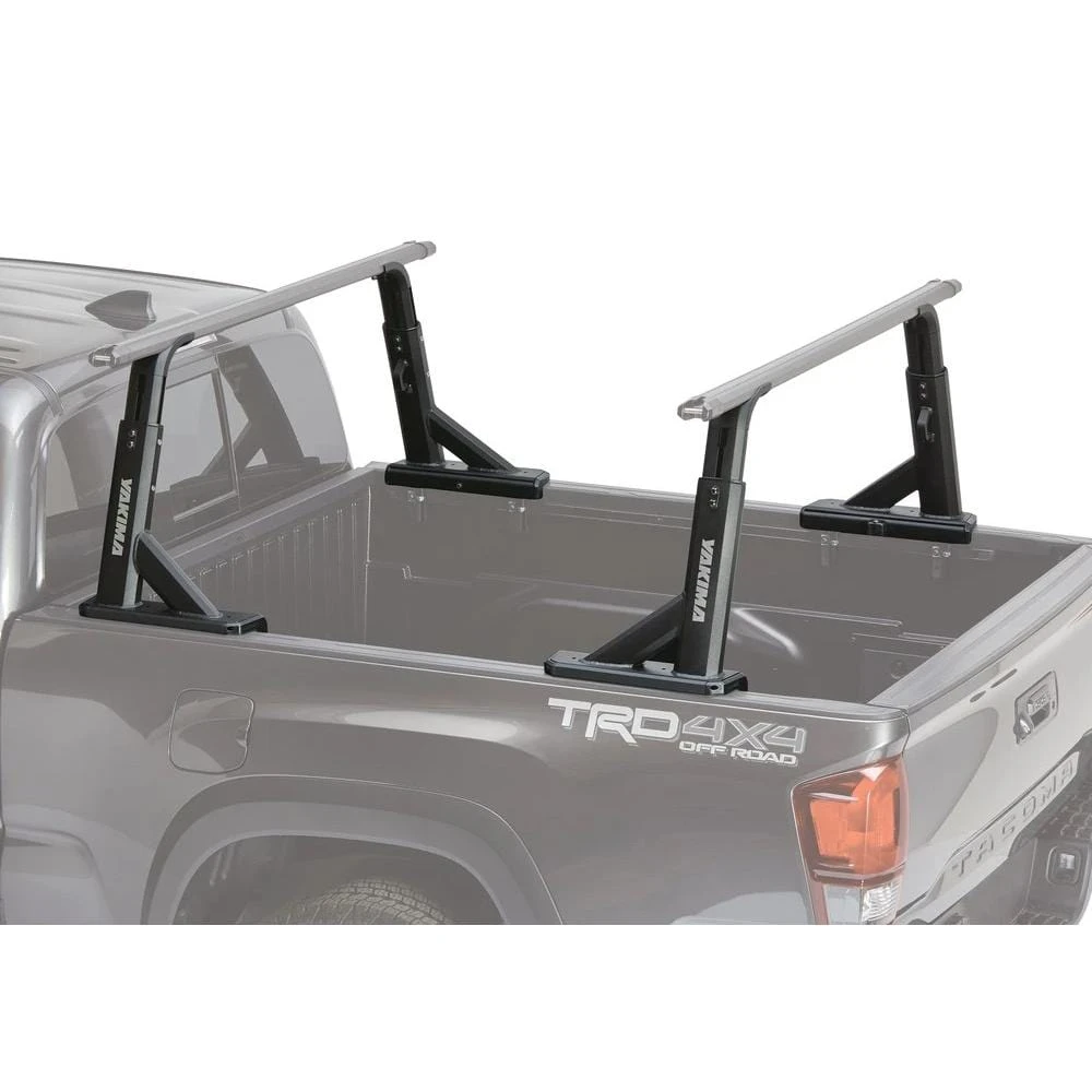 For weekend adventures and hardworking weekdays, the Overhaul HD adjustable truck rack offers best-in-class payload and unmatched versatility. Leveraging our new HD Bars for a 500-lb. on-road carrying capacity, and paired with Yakima’s 300-lb. Off-Road Rating, the OverHaul HD truck rack is the ideal foundation for heavy loads. The crossbar height can be adjusted to suit your needs: way up, for long loads to go over the cab—or down low, to get the rack out of the wind. The uprights are easy to take on and off in minutes, so the truck’s only racked-up when needed. The OverHaul HD truck rack uses any of our HD Crossbar sizes (HD Crossbars sold separately), and accepts our SideBars™ for attaching off-road and utility accessories. Multiple tie-down points and the ability to fit most truck beds—including select tonneau covers—make this an ultra-functional rack that works and plays as hard as you do.